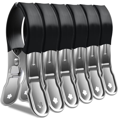 Vicloon Pinces à Serviettes pour Chaise Longue de Plage, 6 Pièces Pince à Linge INOX, Durable Grosse Pince, Epingle a Linge pour Serviettes de Plage, Chaussettes, Vêtement (Noir)