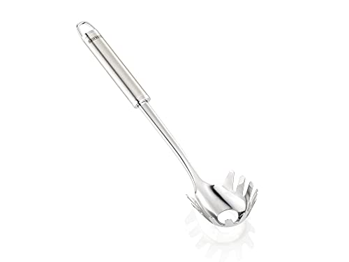 Leifheit Cuillère à spaghetti Sterling, Grande cuillère à pâtes en acier inoxydable de haute qualité résistant à la chaleur, Cuillère à nouilles avec œillet de suspension, Pince à spaghetti, argenté