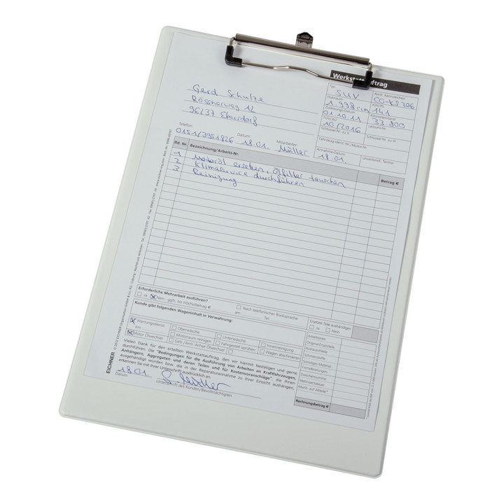 Eichner Porte-bloc A4, blanc, format 232x338 mm + pince à bloc et œillet de fixation