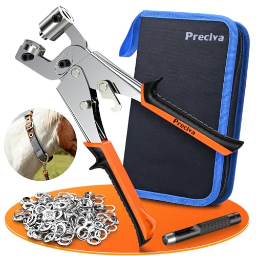 Pince à Oeillets Professionnelle, Preciva 6mm Pinces a Oeillet Magnétique avec 300pcs Œillets Métalliques Kit de Perforatrice Cliquet D'œillets pour Bâches, Affiche, PVC Bannière, Carton