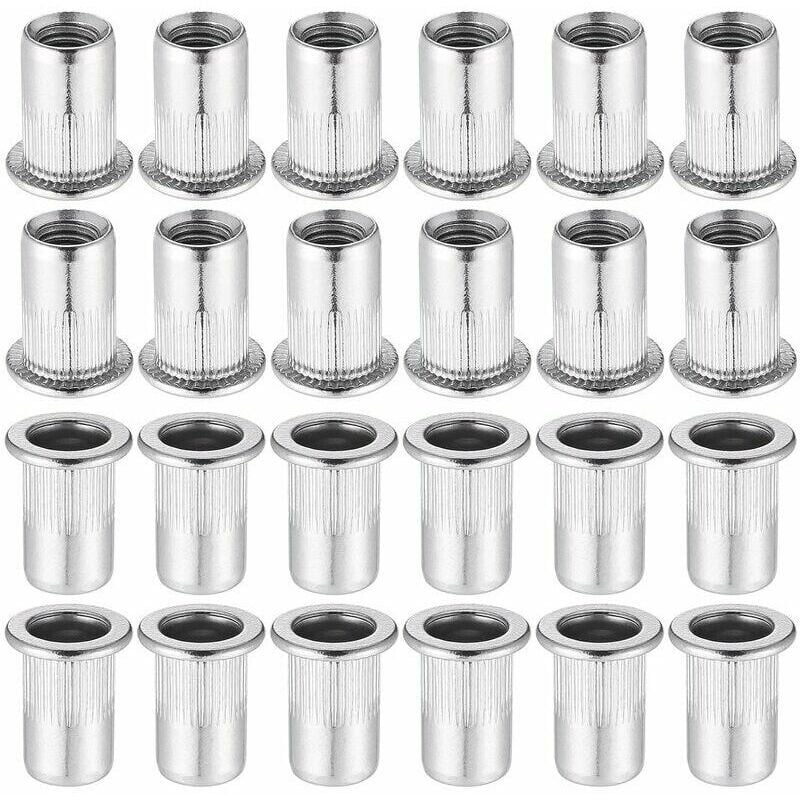 NOLUXA 60 Pièces 304 Ecrou a Sertir M6 en Acier Inoxydable Tête Plate Ecrou Aveugle Rivet Fileté Ecrou a Rivet pour pince à insert fileté
