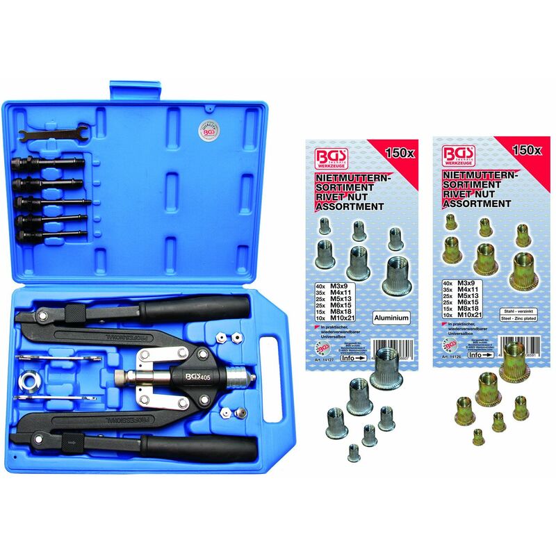 Bgs Technic - Pince a rivet et insert bgs + assortiments inserts acier et alu