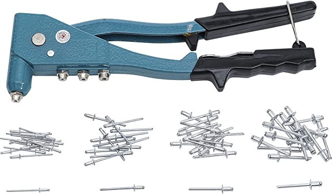 MEVRONISSHOP-Pince a Rivet, Riveteuse Professionnelle, Pince a Rivet Pop avec 200 Rivets pour 4 Types 4,8mm 4,0mm 3,2mm 2,4mm, Pince à riveter Manuelle pour Automobile, Chemin de Fer, Meubles, Jardin