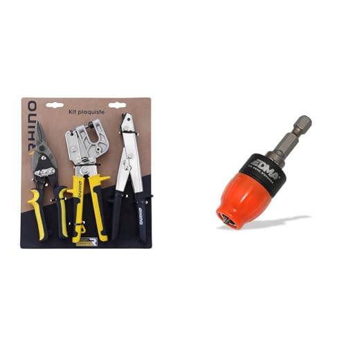 RHINO - Lot de 3 outils, Kit 3 pièces - Cisaille/Grignoteuse/Pince à sertir & EDMA 264055 THE DIMPLER - Porte-embout de vissage aimanté spécial plaquiste