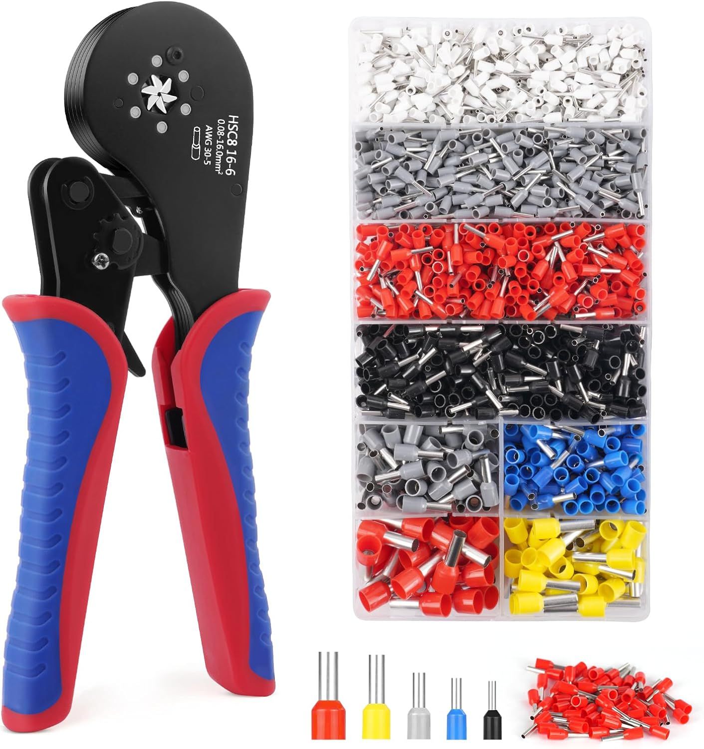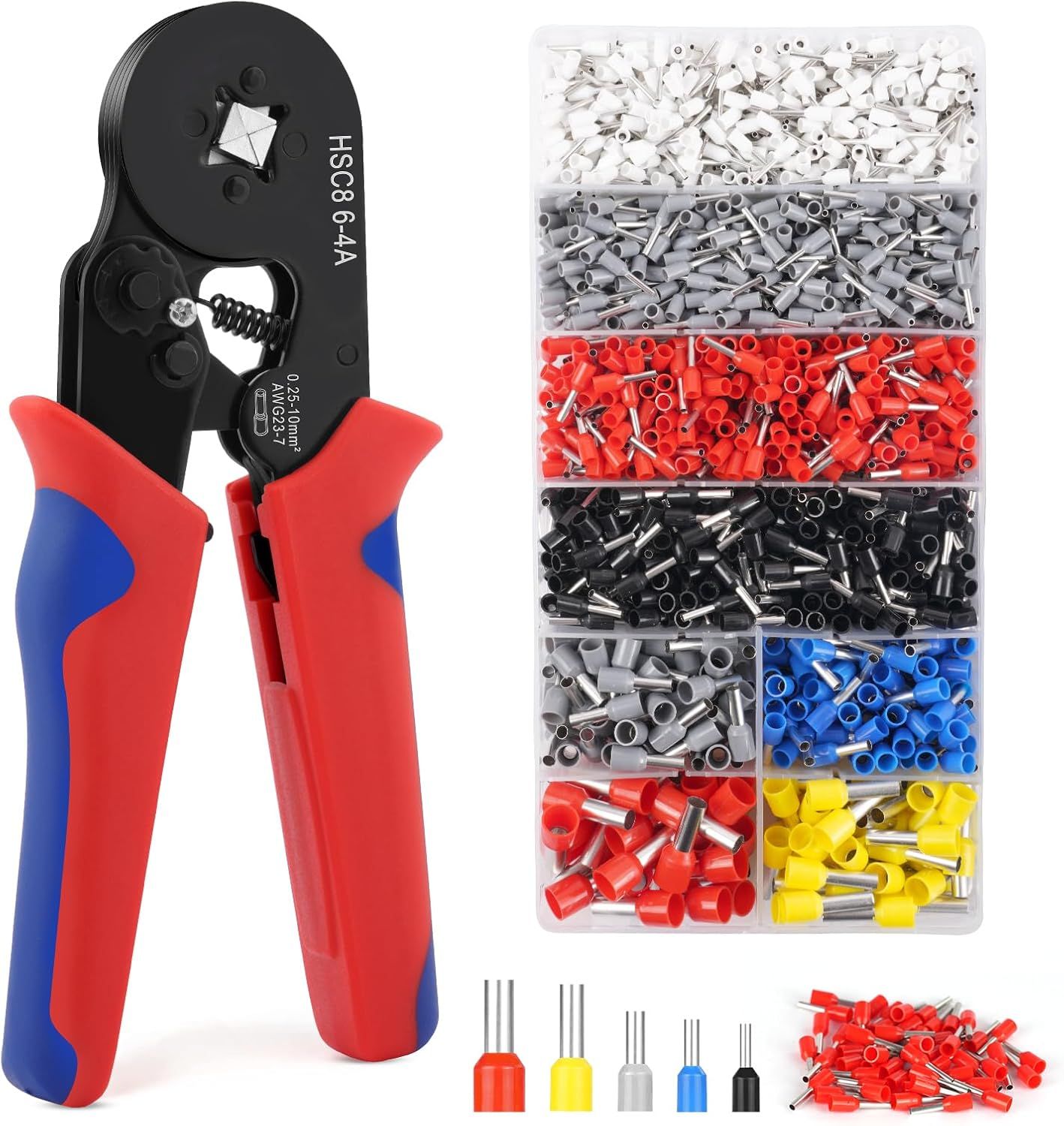 GKWL-0.25-10Mm² Pince À Sertir Avec 2000Pcs Cosses Electrique,Awg23-7 Pince A Sertir Outils De Sertissage Cosses Electriques A Sertir Pince Electricien Pince A Sertir Embout De Cable