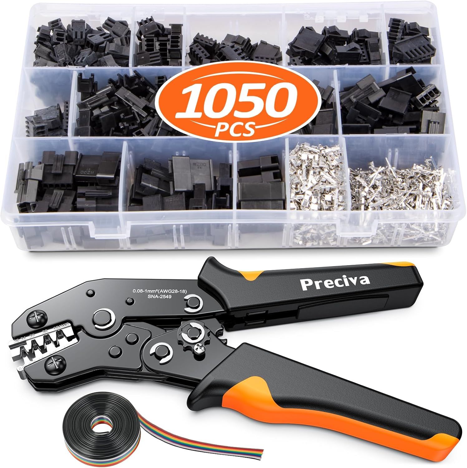 GKWL-Pince À Sertir De Connecteurs Jst-Sm 1050Pcs Pince Electricien Outil De Sertissage À Cliquet Awg28-18/0.08-1Mm² Plage De Sertissage Pour Dopont,Molex,Atx,Jst Series