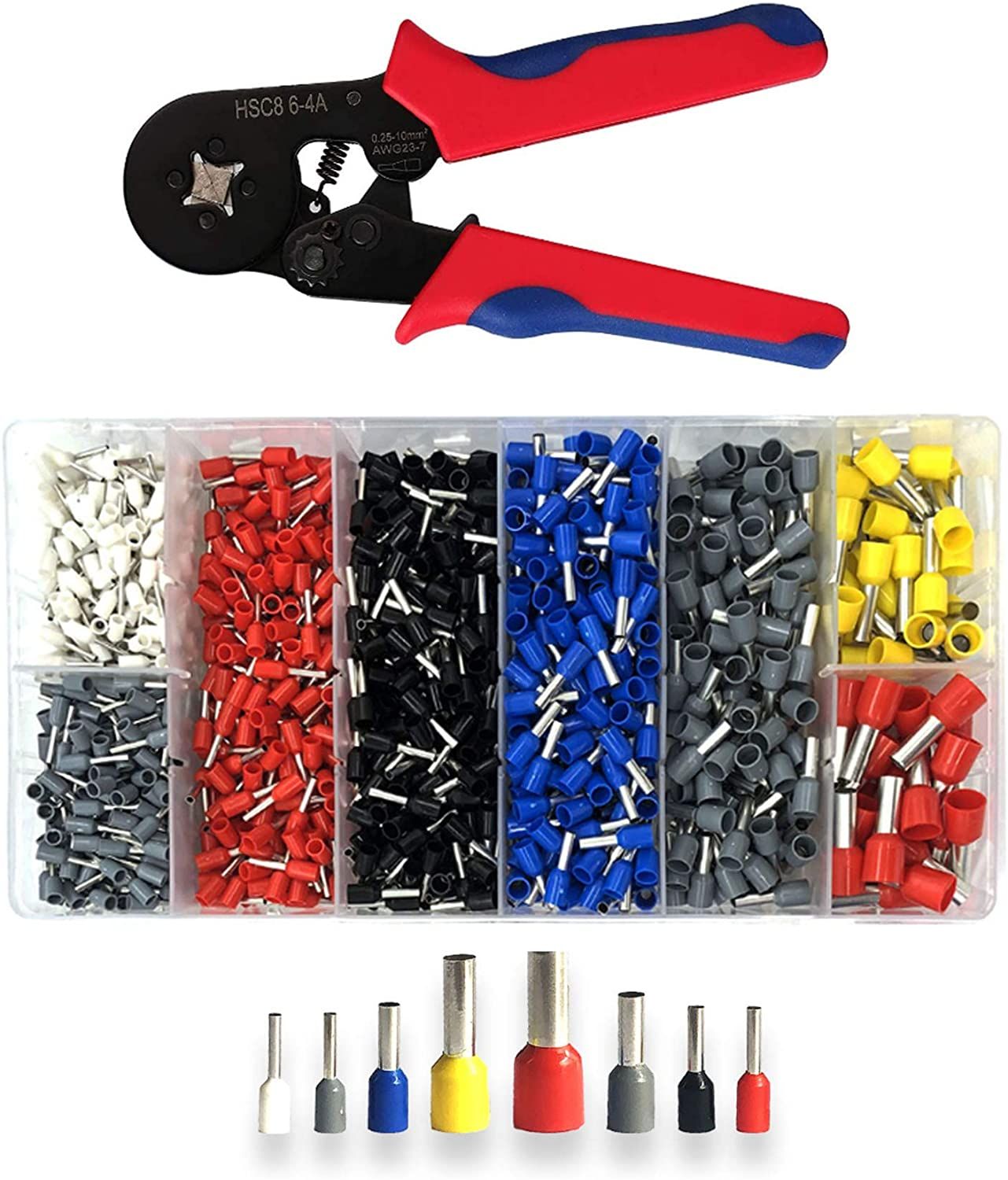 JEXNOVASHOP-0.25-10mm² Pince à Sertir avec 2000pcs Cosses Electrique, AWG23-7 Pince a Sertir Outils de Sertissage Cosses Electriques a Sertir Pince Electricien Pince a Sertir Embout de Cable