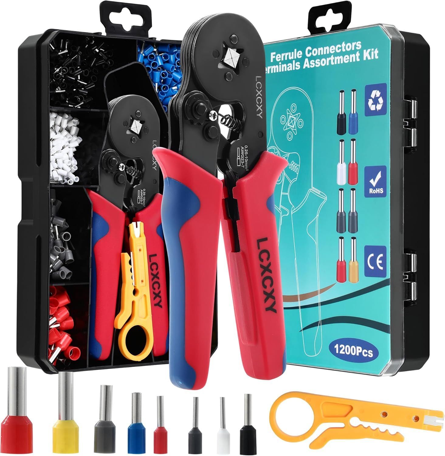GKWL-Pince À Sertir Set D'Embouts,1200 Boîtes À Bornes Sertir Isolées,Câble De Cosses 0,25-10,00 Mm²,Pince À Sertir,Pince Electricien,Presse Pinces Outils