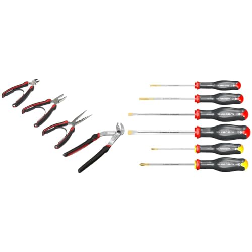 FACOM Jeu de 4 Pinces - Pince Multiprise à Verrouillage, Pince Coupante Diagonale & ATP.J6PB - Jeu de 6 Tournevis