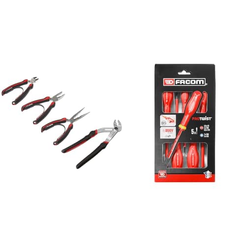 FACOM Jeu de 4 Pinces - Pince Multiprise à Verrouillage, Pince Coupante Diagonale & Jeu de 5 Tournevis Protwist Isolés 1000V - Tournevis - Vissage - AT5VE.PB