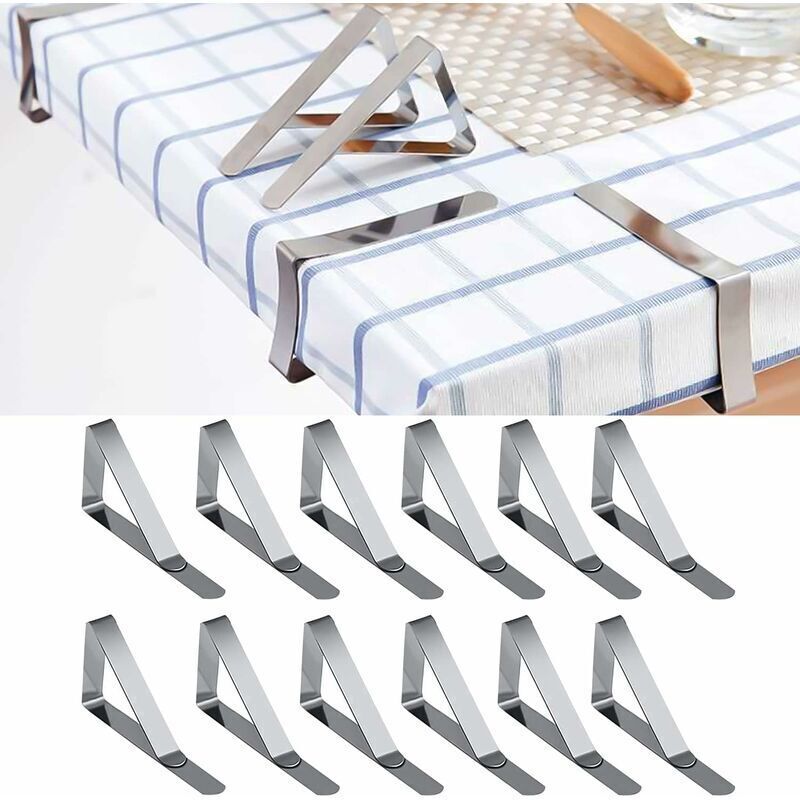 12 Pièces Pince Nappe Exterieur 7 x 4 cm Pince Attache Nappe de Table Epaisse Anti-Glissant Pince à Nappe en Acier Inoxydable