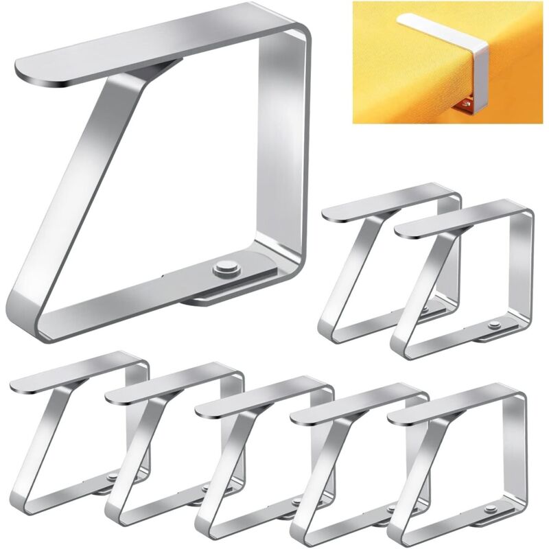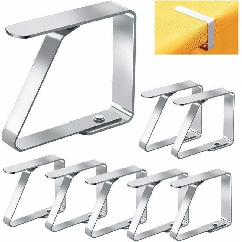 HGBFLTY Pince Nappe Clip de Support Table Carte en Acier Inoxydable, 8 pièces, Clips Nappe réglables, Pince Couverture Tissu, Outils Pique-Nique fête
