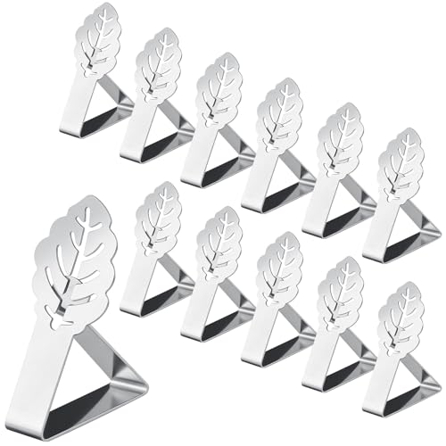 VINATO 12 Pièces Pince Nappe Exterieur en Acier Inoxydable, Pinces à Nappe de Table Épaisses avec Design Feuille, Pinces de Table pour l'Intérieur et l'Extérieur, Jardin, Pique-Nique, Barbecue, Fête