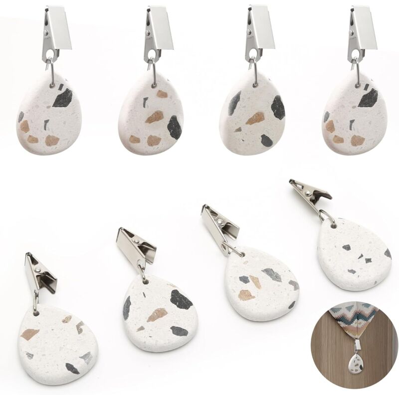 AIBAOBAO Poids pour Nappe en Pierre, 8 Pièce Pendentif Nappe Marbre Naturel, Pince Nappe Exterieur Pierre, Attache Nappe avec Poids, Pince à Nappe de Table pour Fête, Mariage, Fcuisine, Pique-Nique