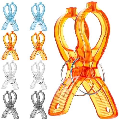 Cozary Grosse Pince à Linge, 8 Pièces Epingle a Linge Coupe-Vent, Plastique Pince Multifonctions pour Serviette de Plage, Transat, Piscine et Jardin