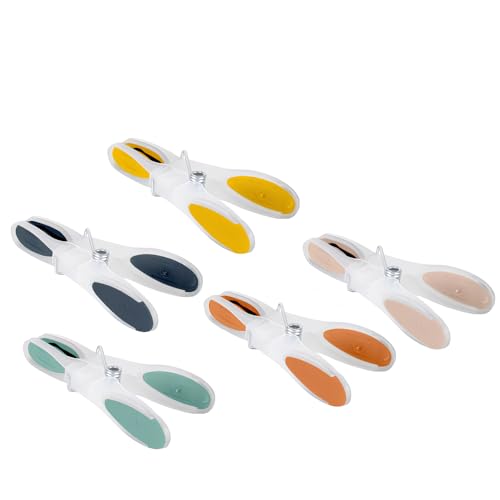 Fackelmann 59905 Lot de 5 Clips colorés pour Fermeture de Sachet, Clips pour sachets hermétiques, Pince à sachets, Plastique, Rouge, Vert, Bleu, Blanc, Jaune, 11 cm