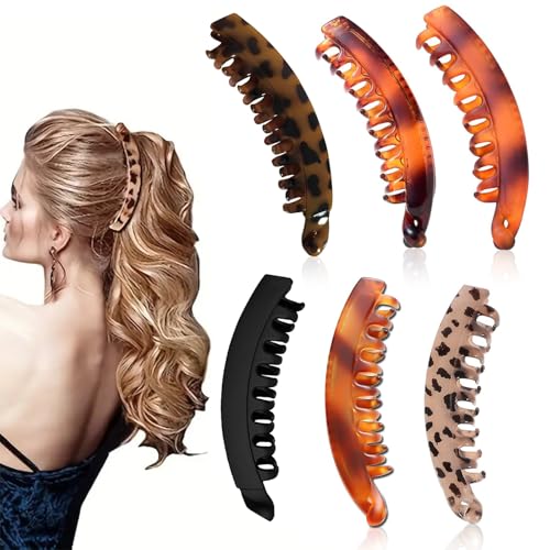 YFaith 6 Pièces Pinces à Cheveux, 13 cm en Plastique Pince pour Cheveux, Forme de Banane Pince Plates Cheveux, Verticale Épingle à Cheveux Queue de Cheval, 6 Styles, pour Fixer Cheveux