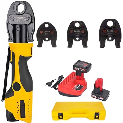Pince à sertir électrique portable – Pince à sertir hydraulique pour tube en cuivre avec 3 mâchoires et lumière LED – Outil sans fil pour systèmes de plomberie