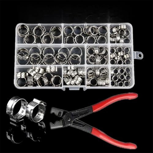 Getdoublerich Lot de 100 colliers de serrage assortis en acier inoxydable avec pince, fixations de plomberie automobile