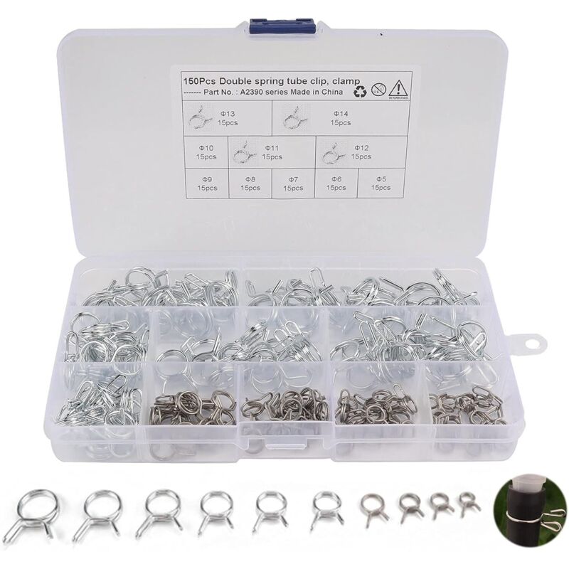 150Pcs 10Tailles Pince de Durite de Conduite de Carburant, Pince à Ressort, Collier de Serrage Durite Convient pour Tuyaux de 5mm - 14mm