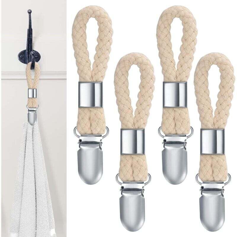 Green Mobility-6 pcs Pinces à Serviettes, Crochet Torchon en Métal avec Coton Tissé, Pince Torchon Solides, Pinces à Vêtements, Crochets pour