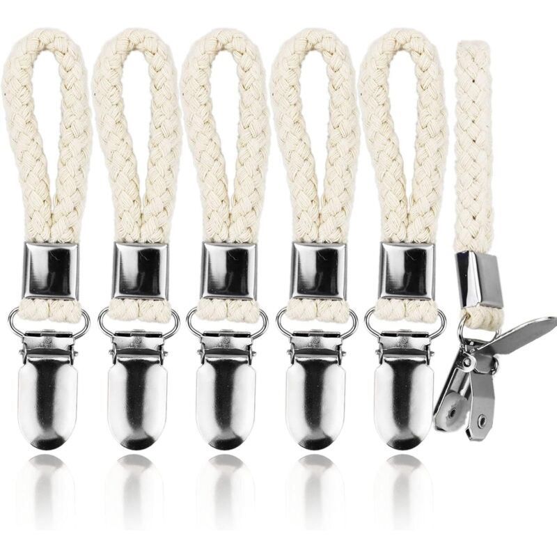 6 pcs Pinces à Serviettes, Crochet Torchon en Métal avec Coton Tissé, Pince Torchon Solides, Pinces à Vêtements, Crochets pour Serviettes de Plage, Serviettes à Main pour Cuisine et Salle (Blanc)