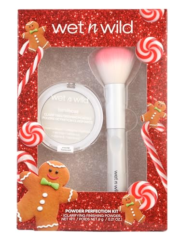 Wet n Wild Powder Perfection Kit, Coffret Cadeau de Maquillage avec Poudre Translucide + Pinceau pour un Fini Mat