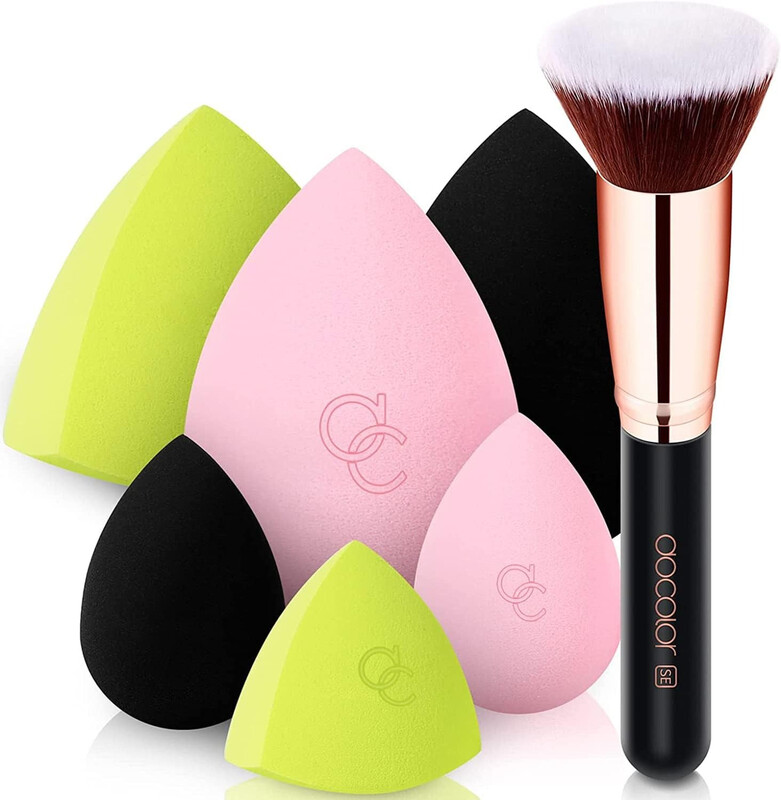 docolor Coffret de 6 éponges à maquillage avec pinceau plat - Néon