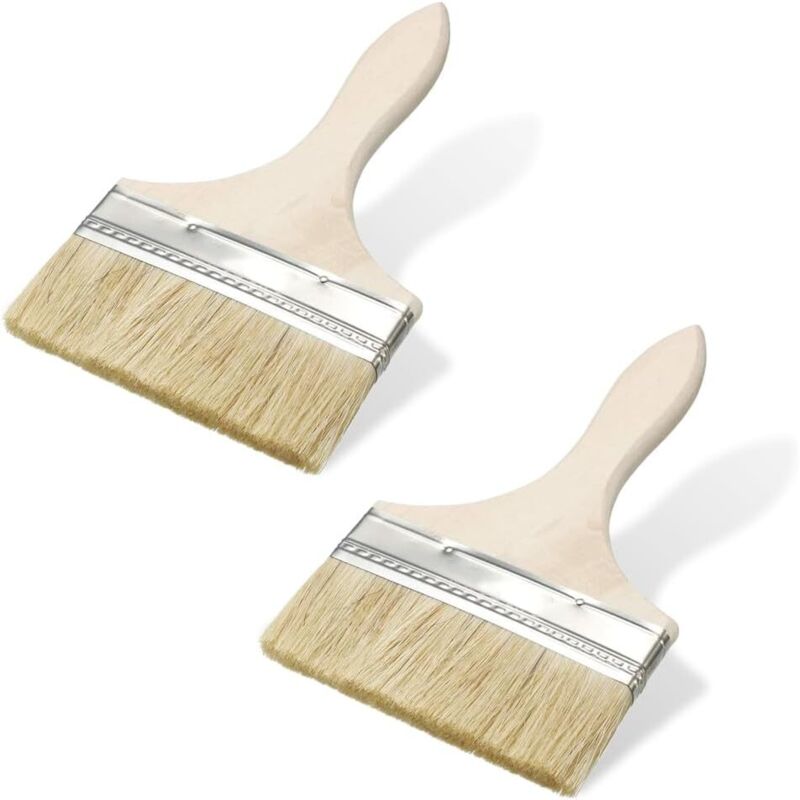 ToolSpace 2 Pièce Pinceau 70/130mm Brosse en Bois pour Lasure Badigeon Chauler de la Peinture à la Chaux Spalter Large avec Poil Naturel pour Application Terrasse Mur Enduit Murale à Effet Papier