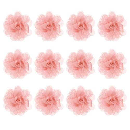 M METERXITY 12 Pcs Fleurs en Chiffon 1,97 x 1,97 Pouces Fleurs en Tissu en Maille Fleurs en Chiffon Complètes Pinces à Cheveux Fleurs pour la Décoration Intérieure/Bandeaux [Marron Rose]