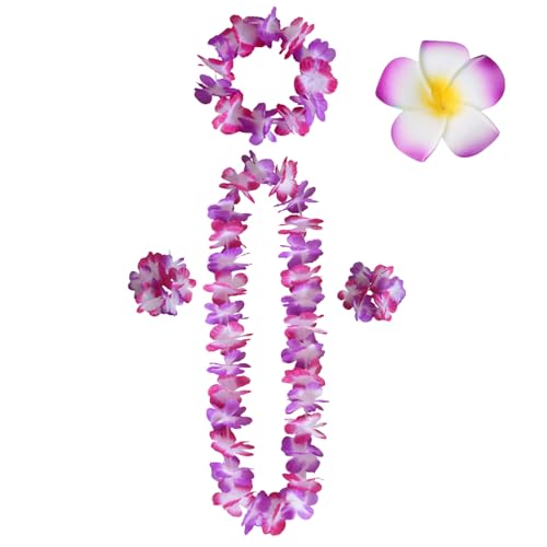 Luau Colliers de Fleurs Hawaïennes avec collier,bandeau,bracelet,pinces à cheveux,guirlande de fleurs pour hawaïen
