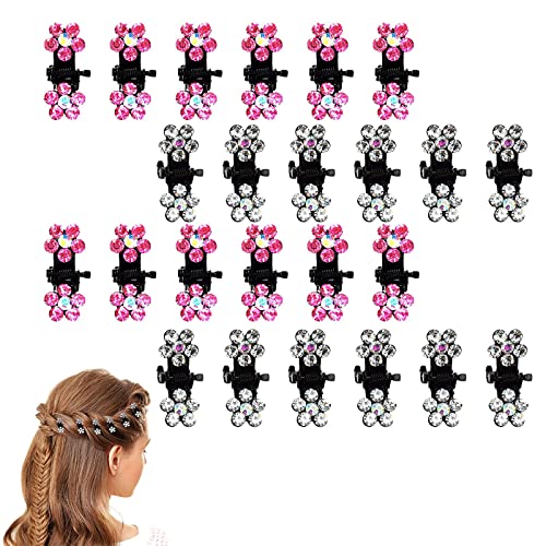 Generic Lot de 24 mini pinces à cheveux pour filles et enfants - Accessoires pour cheveux - Rouge rose et argent - Petites fleurs - Pour tous les jours, fête, bal de fin d'année, mariage