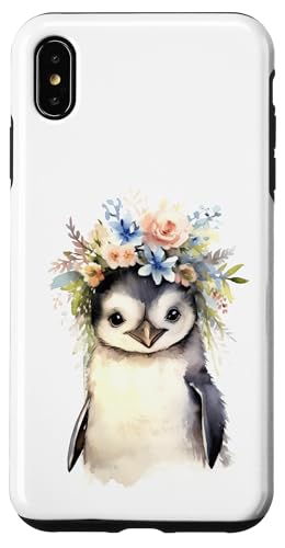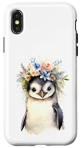 Adorable bébé Pingouin Aquarelle avec Couronne Florale Coque pour iPhone XS Max