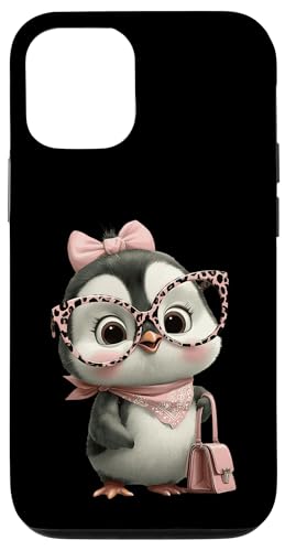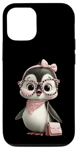 Lunettes Bébé Pingouin Kawaii Personnage Rose Léopard Portrait Coque pour iPhone 12/12 Pro