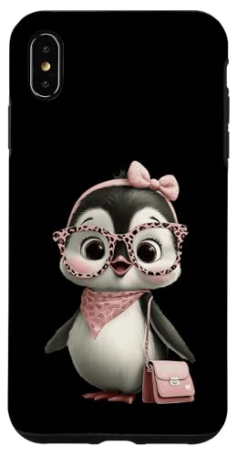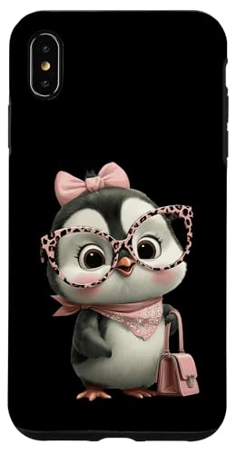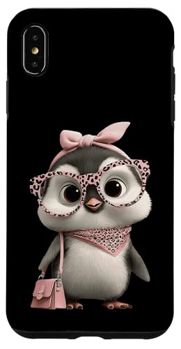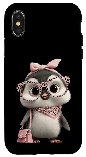 Lunettes Bébé Pingouin Kawaii Personnage Rose Léopard Portrait Coque pour iPhone XS Max