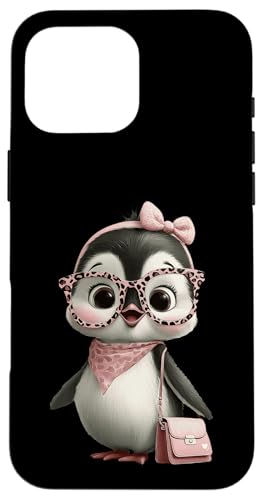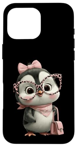 Lunettes Bébé Pingouin Kawaii Personnage Rose Léopard Portrait Coque pour iPhone 16 Pro Max