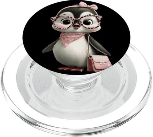 Lunettes Bébé Pingouin Kawaii Personnage Rose Léopard Portrait PopSockets PopGrip pour MagSafe