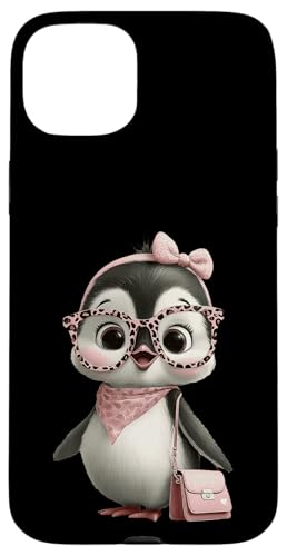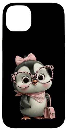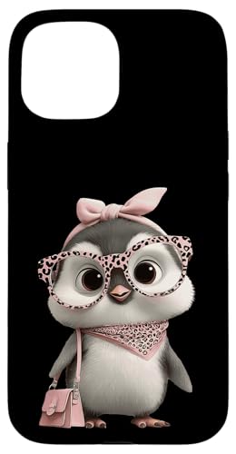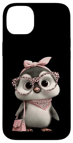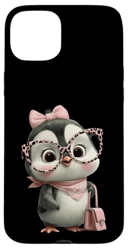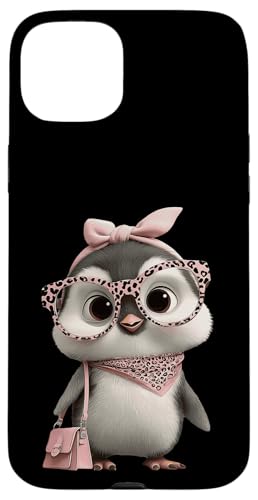 Lunettes Bébé Pingouin Kawaii Personnage Rose Léopard Portrait Coque pour iPhone 15 Plus