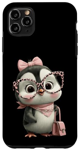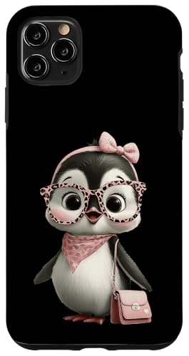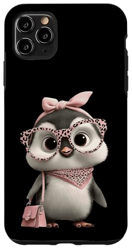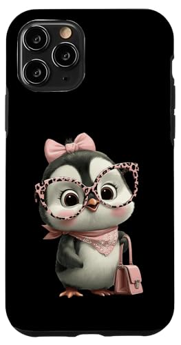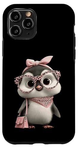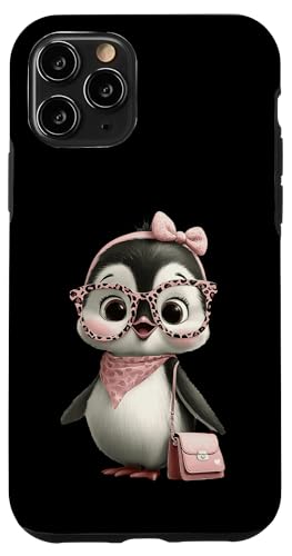 Lunettes Bébé Pingouin Kawaii Personnage Rose Léopard Portrait Coque pour iPhone 11 Pro