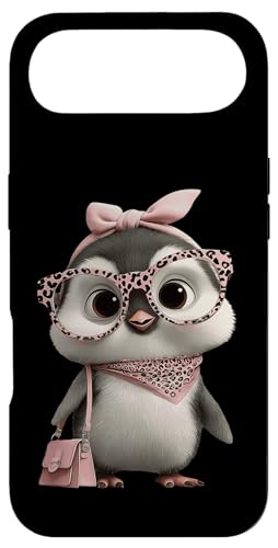 Lunettes Bébé Pingouin Kawaii Personnage Rose Léopard Portrait Coque pour iPhone Air