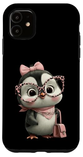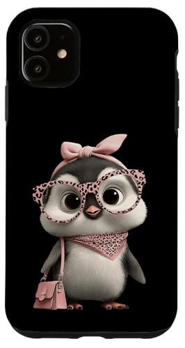 Lunettes Bébé Pingouin Kawaii Personnage Rose Léopard Portrait Coque pour iPhone 11