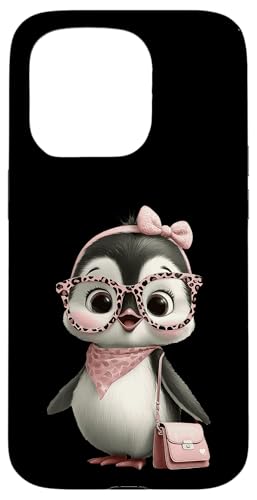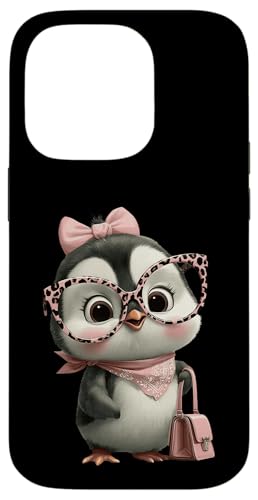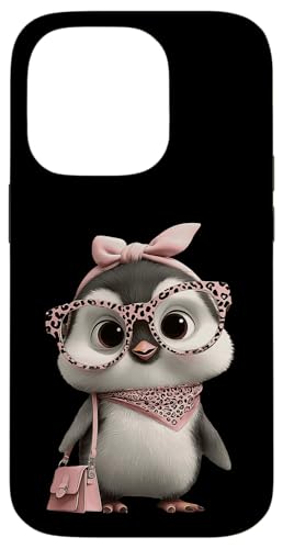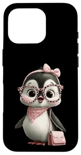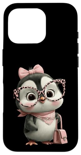 Lunettes Bébé Pingouin Kawaii Personnage Rose Léopard Portrait Coque pour iPhone 16 Pro