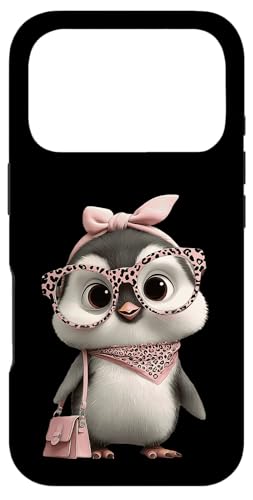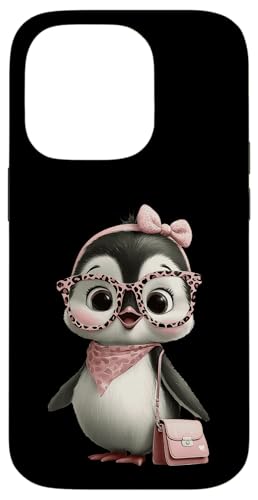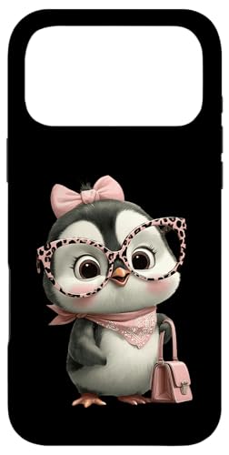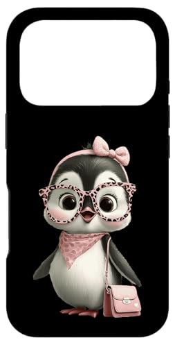 Lunettes Bébé Pingouin Kawaii Personnage Rose Léopard Portrait Coque pour iPhone 17 Pro