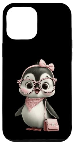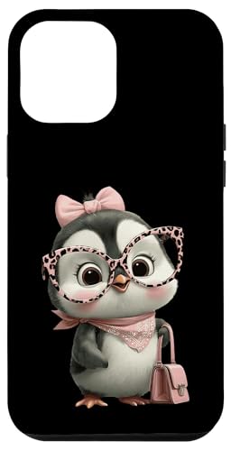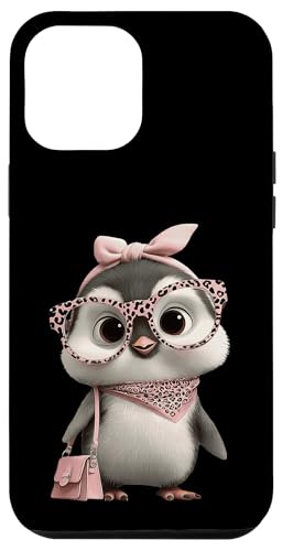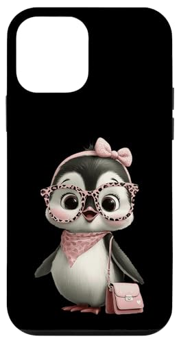 Lunettes Bébé Pingouin Kawaii Personnage Rose Léopard Portrait Coque pour iPhone 12 Pro Max