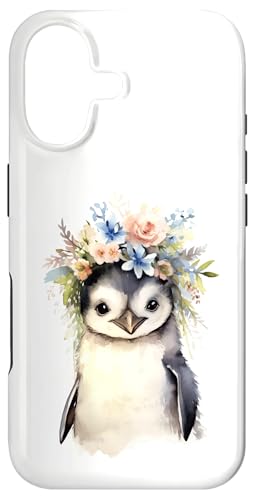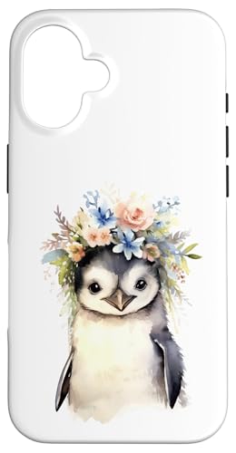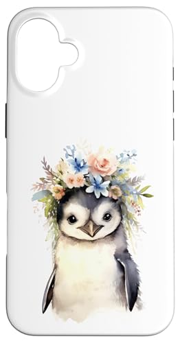 Adorable bébé Pingouin Aquarelle avec Couronne Florale Coque pour iPhone 16 Plus