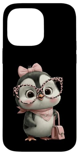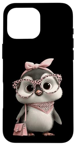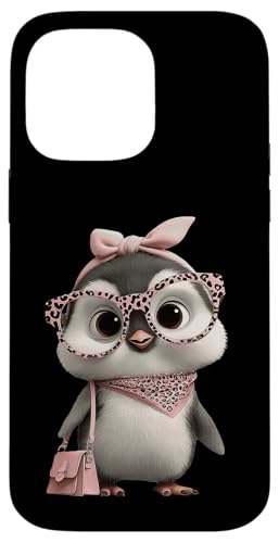 Lunettes Bébé Pingouin Kawaii Personnage Rose Léopard Portrait Coque pour iPhone 17 Pro Max