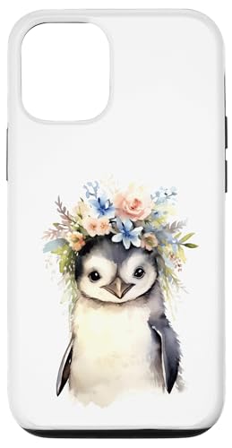 Adorable bébé Pingouin Aquarelle avec Couronne Florale Coque pour iPhone 12/12 Pro