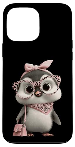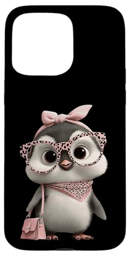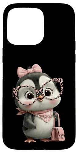 Lunettes Bébé Pingouin Kawaii Personnage Rose Léopard Portrait Coque pour iPhone 15 Pro Max