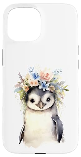 Adorable bébé Pingouin Aquarelle avec Couronne Florale Coque pour iPhone 15