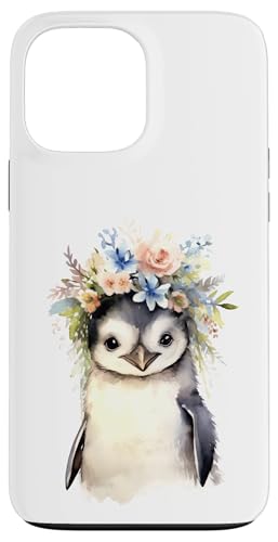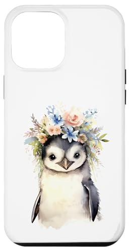 Adorable bébé Pingouin Aquarelle avec Couronne Florale Coque pour iPhone 13 Pro Max